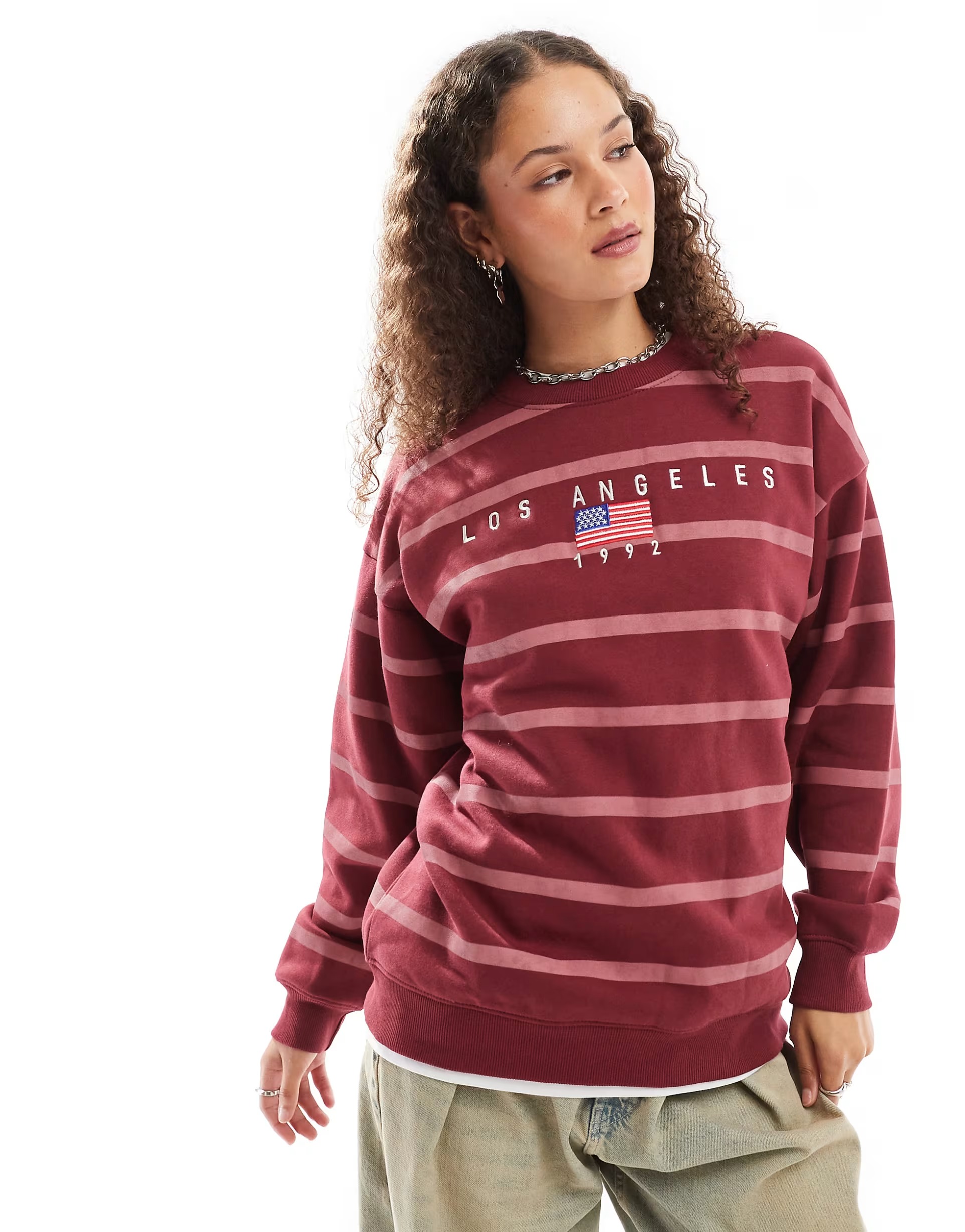 سویشرت دورس راه راه زنانه اورسایز طرح LA برند Daisy Street
