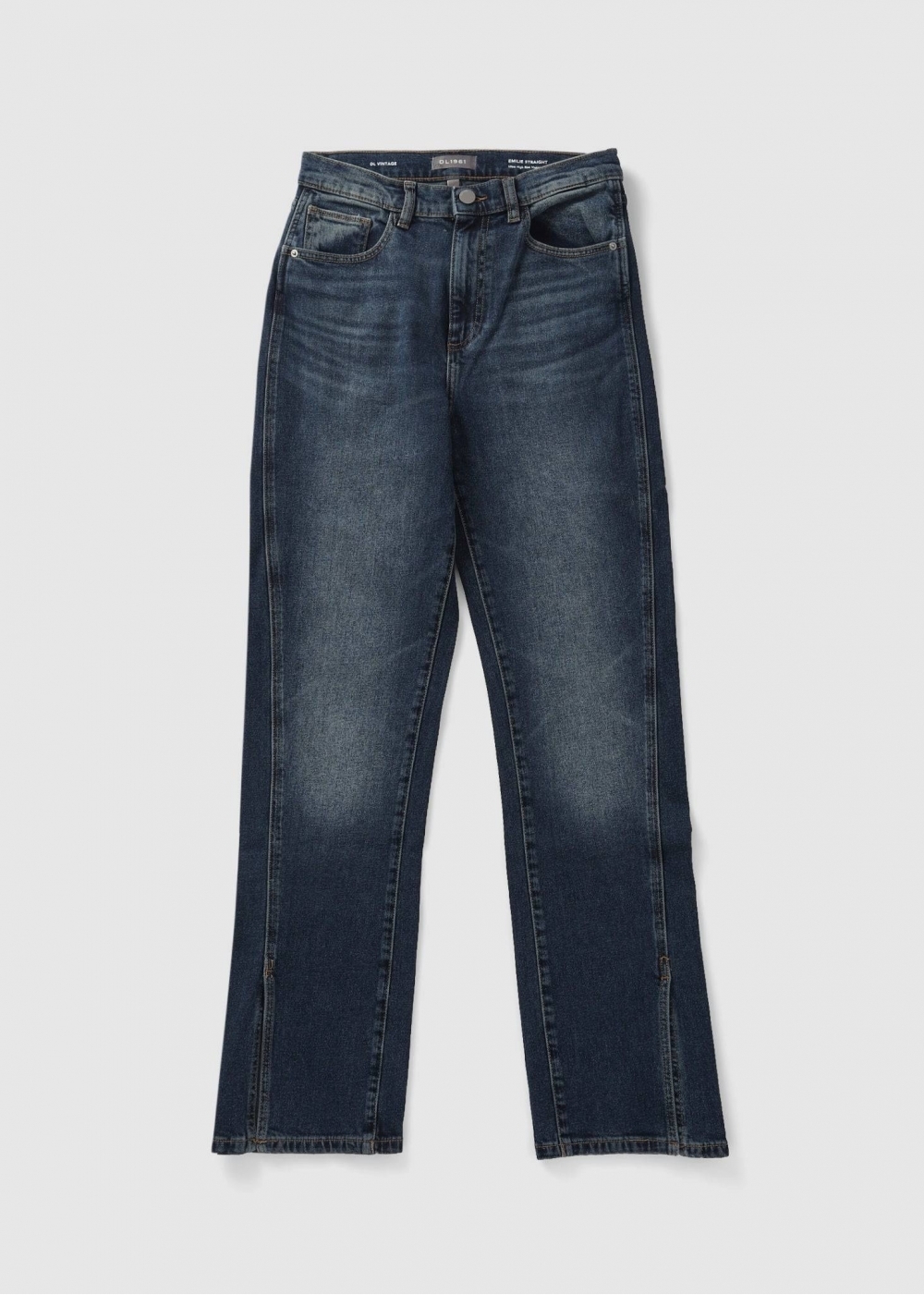 شلوار جین زنانه راسته دمپا چاک وینتج فاق بلند برند DL1961 - مدل Emilie Straight Thundercloud
