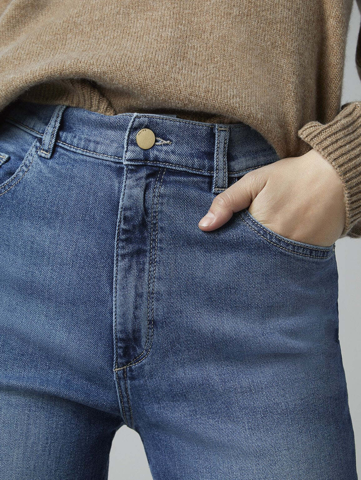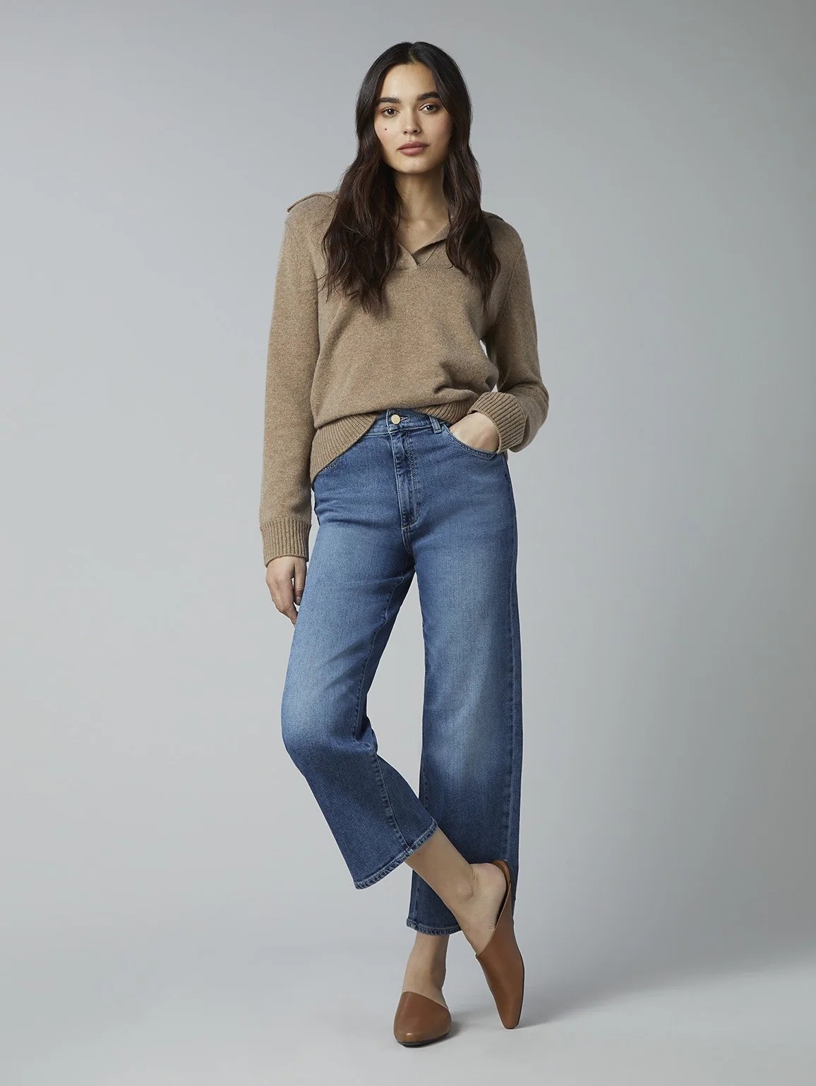 شلوار جین زنانه واید لگ کوتاه وینتج فاق بلند برند DL1961 - مدل Hepburn Wide Leg Maritime