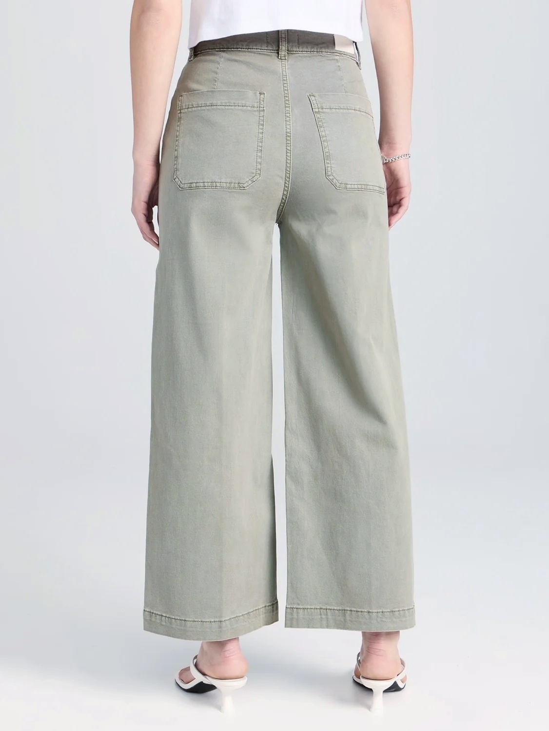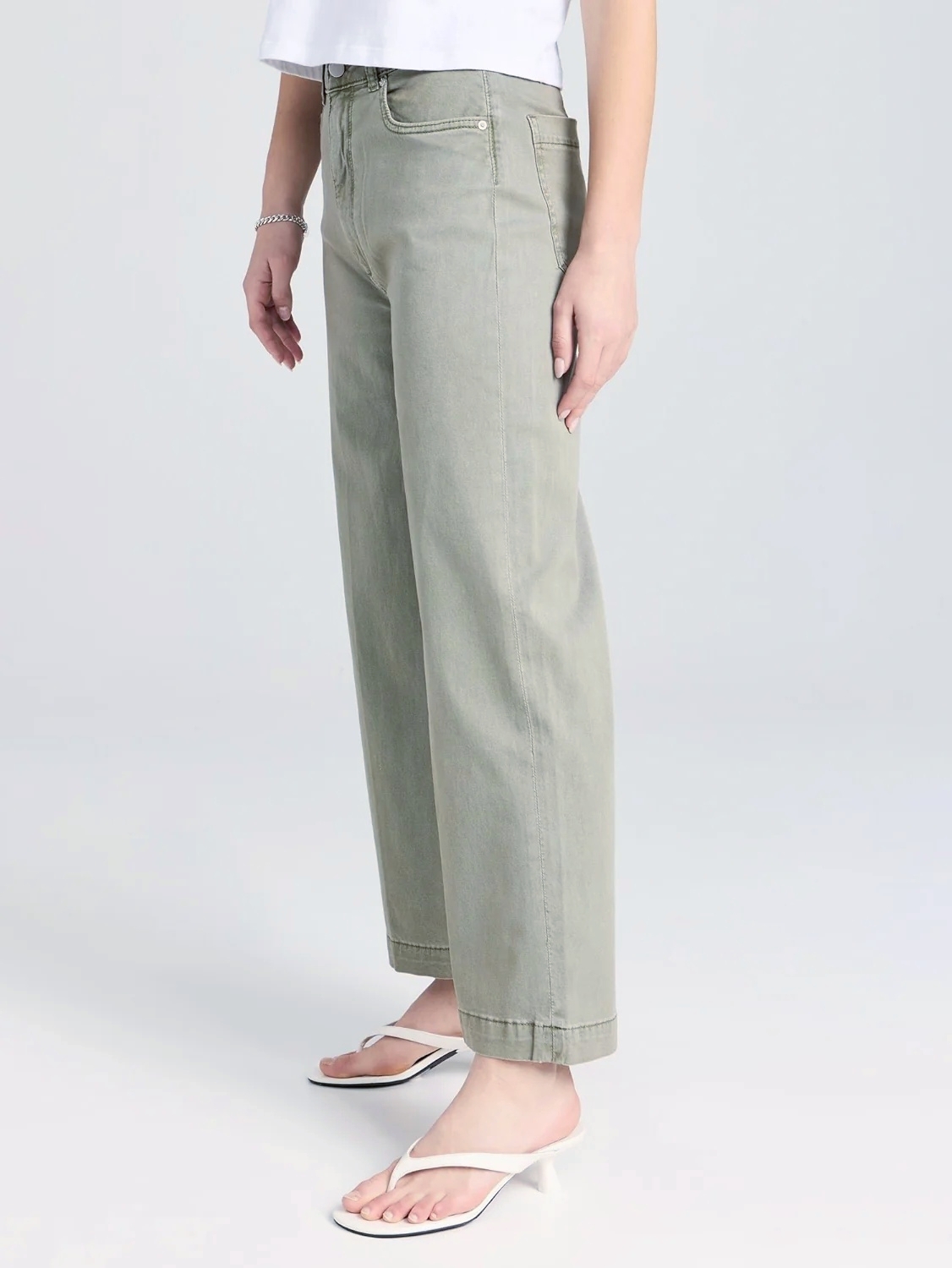 شلوار جین زنانه واید لگ کوتاه فاق بلند برند DL1961 - مدل Hepburn Wide Leg Alpine Green