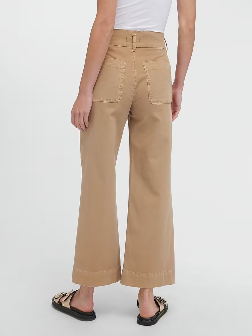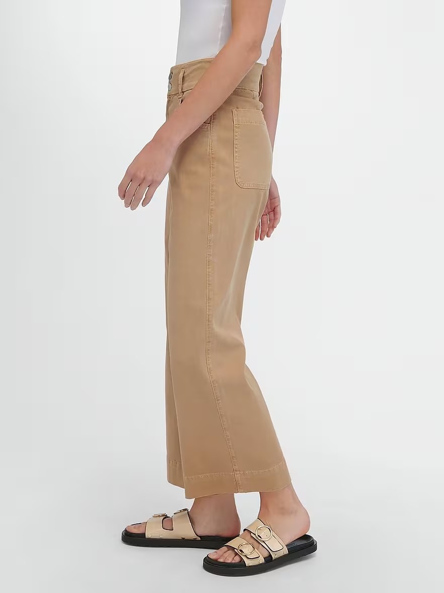 شلوار جین زنانه واید لگ کوتاه فاق بلند برند DL1961 - مدل Hepburn Wide Leg Khaki