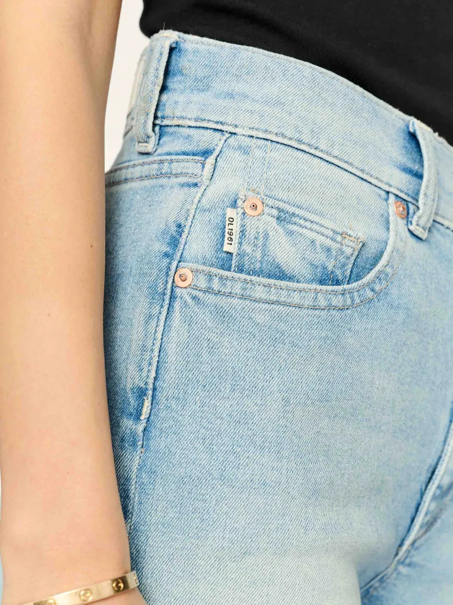 شلوار جین زنانه واید لگ کوتاه وینتج فاق بلند برند DL1961 - مدل Hepburn Wide Leg Lt Island Park