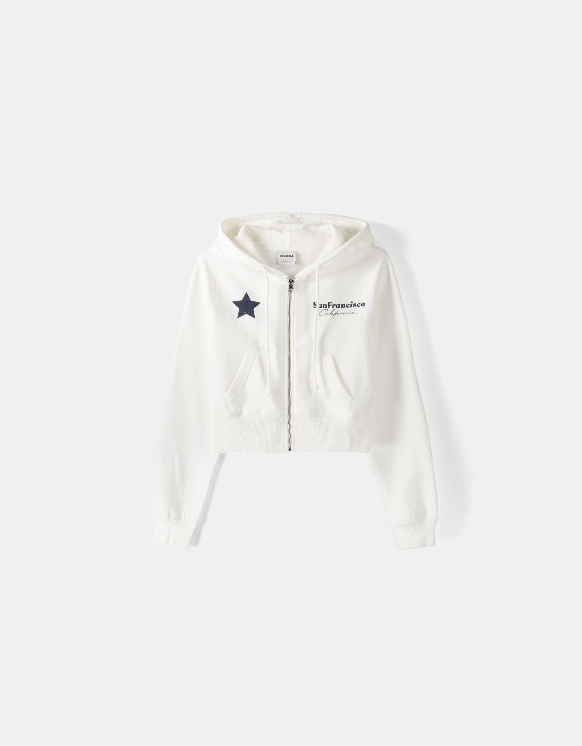 هودی زیپ دار کراپ طرح دار زنانه برند برشکا Bershka